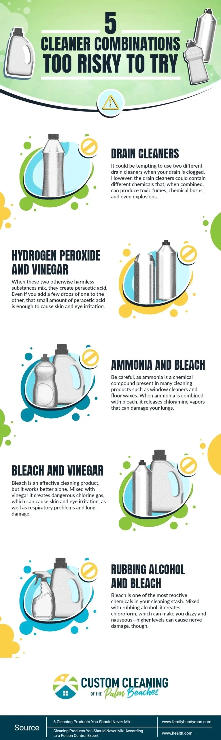 Concerning cleaning products, mixing is not always recommended. Next, you’ll find five cleaning product mixtures with unexpected and dangerous outcomes.