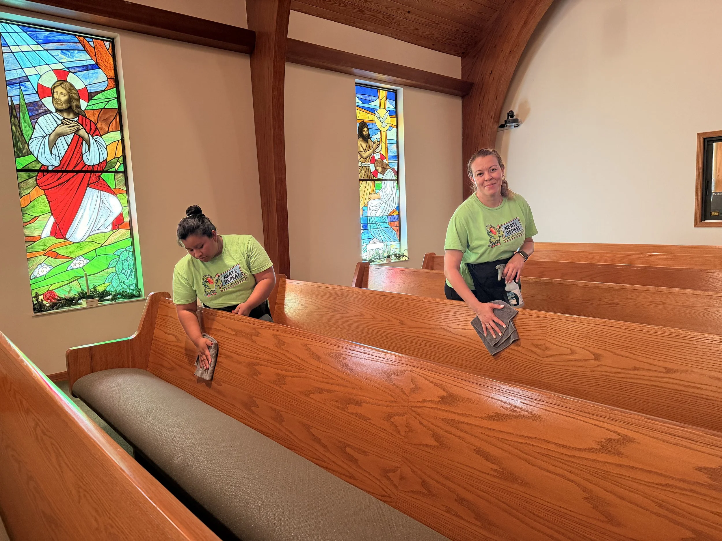 With over 35 years of service and an A+ rating from the Better Business Bureau, Neat & Repeat Cleaning brings unmatched reliability and professionalism to church cleaning. We understand the unique care and respect sacred spaces require. Our skilled cleaning professionals provide detail-oriented cleaning for sanctuaries, fellowship halls, and gathering spaces to ensure your place of worship remains clean, safe, and welcoming for all.